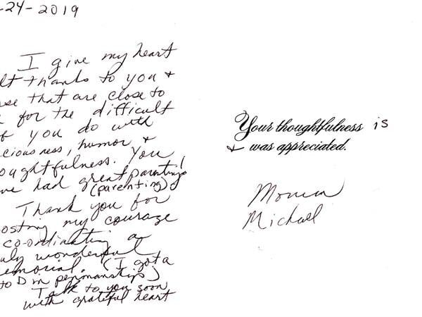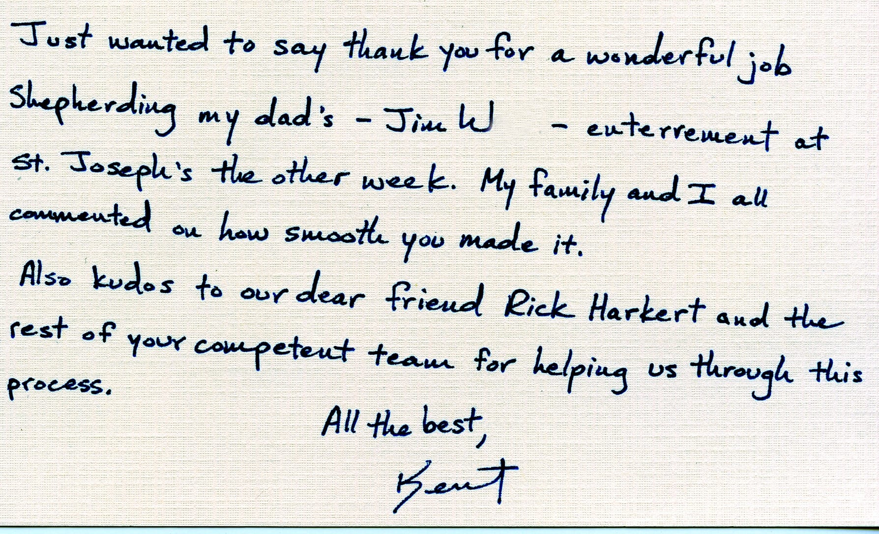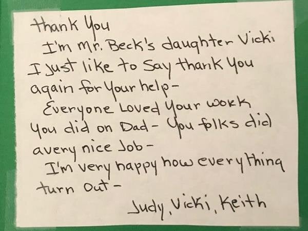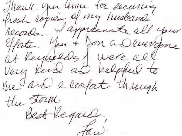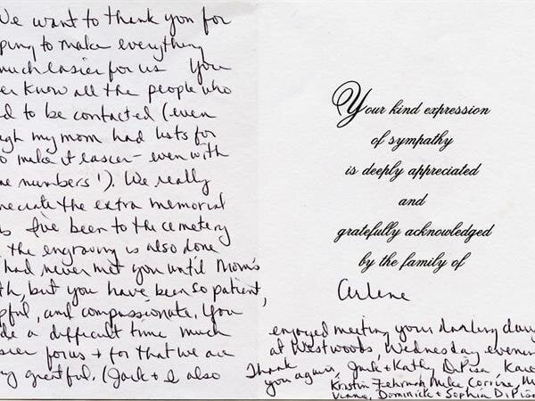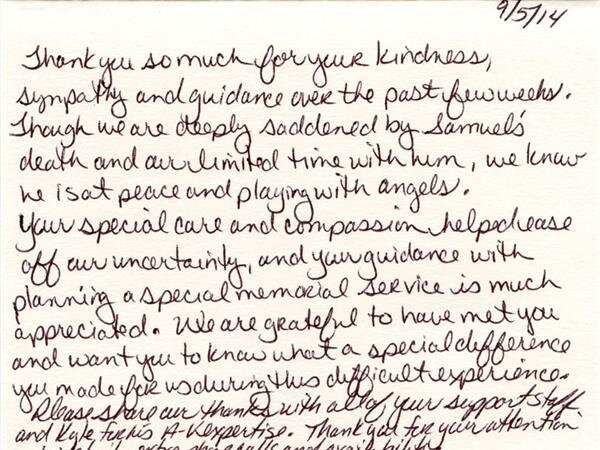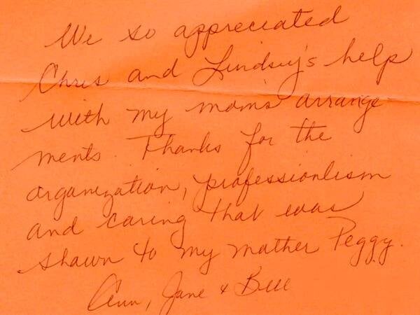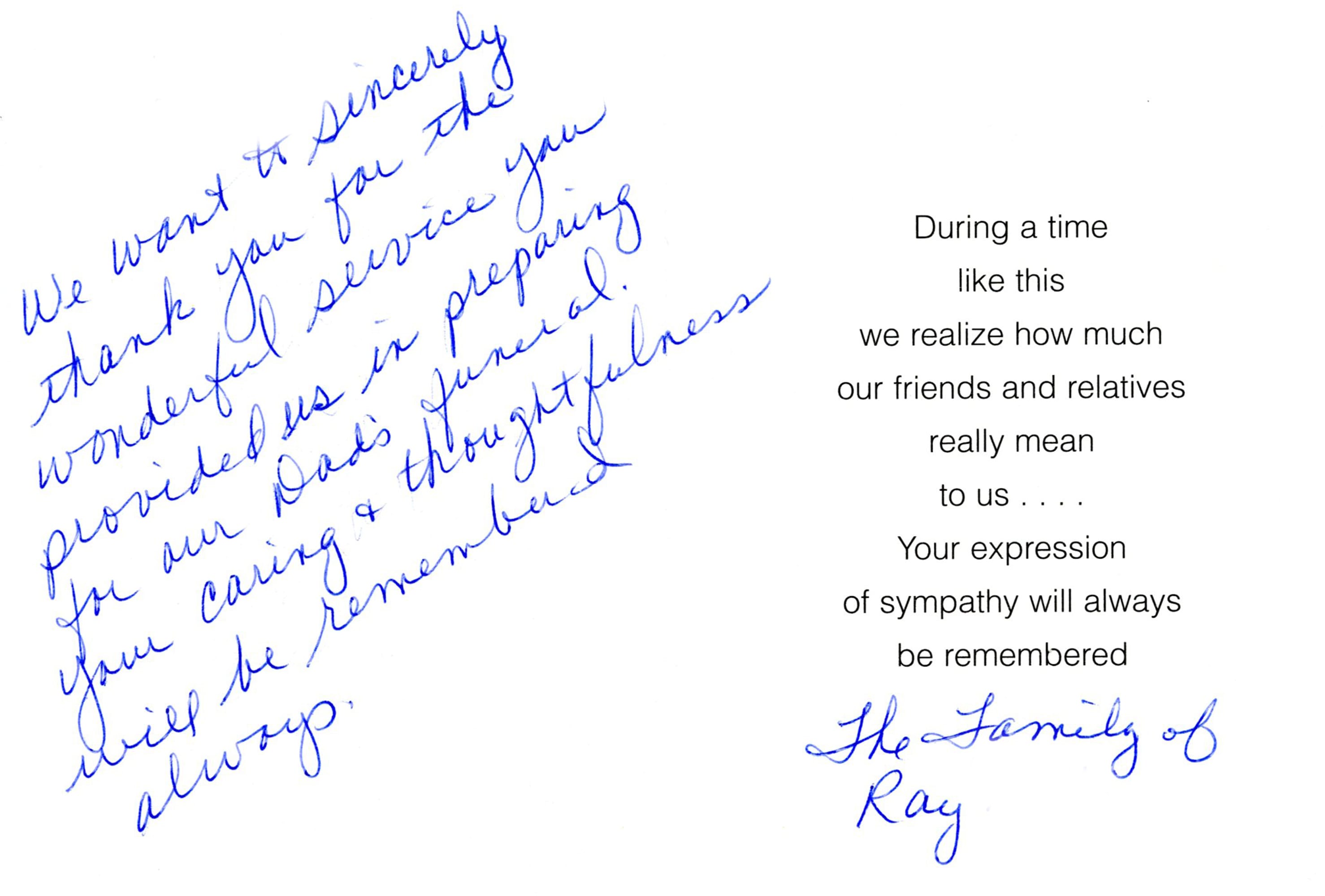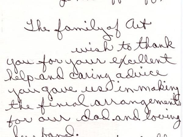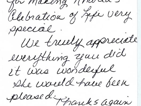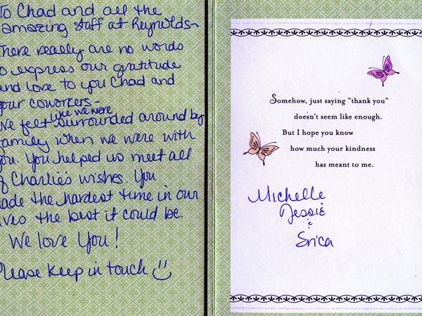 We receive many letters from the families we've helped, thanking us for our caring ways during their time of loss. Their words warm our hearts, and speak to you of our professionalism, compassion, and the true value of the services we provide. We have kindly removed the last names for online privacy.