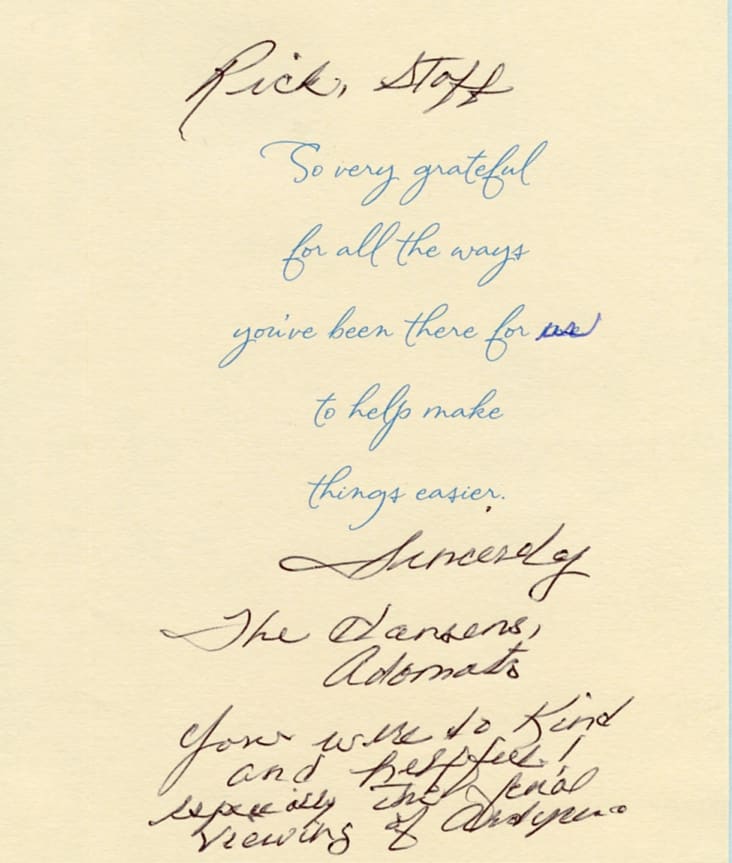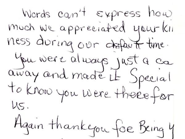 I think you went "above and beyond" in so many ways. Thank you for the tender care of Marvin and our family.
