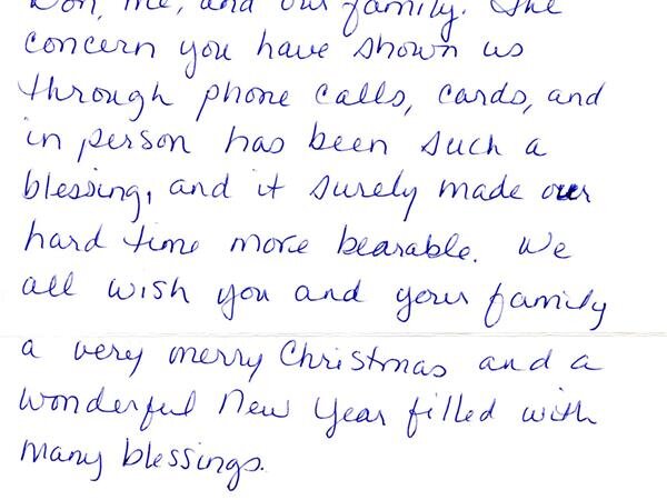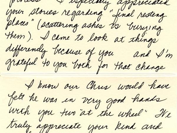 Chris, Thank you for the care and direction you have given to me and our entire family. You have made a very hard moment easier and I am very apprecaitive.